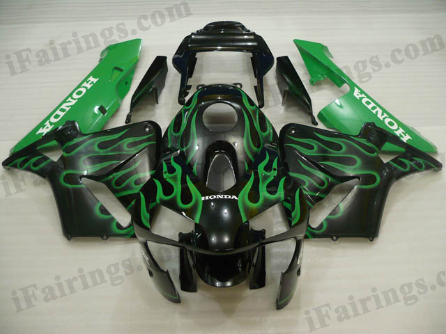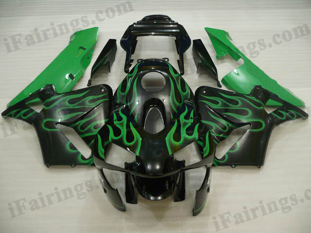 Product Description CBR600RR 2003 2004 black and green flame fairing kit. Parts: All painted cowls shown as the photo and all any small ABS...