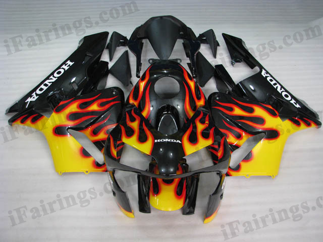 Product Description CBR600RR 2003 2004 black and yellow flame fairing kit. Parts: All painted cowls shown as the photo and all any small...