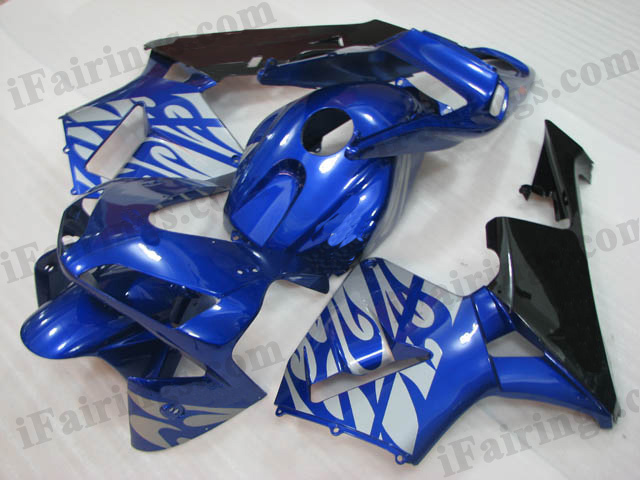 2003 2004 CBR600RR blue and black fairing kits with silver strips.