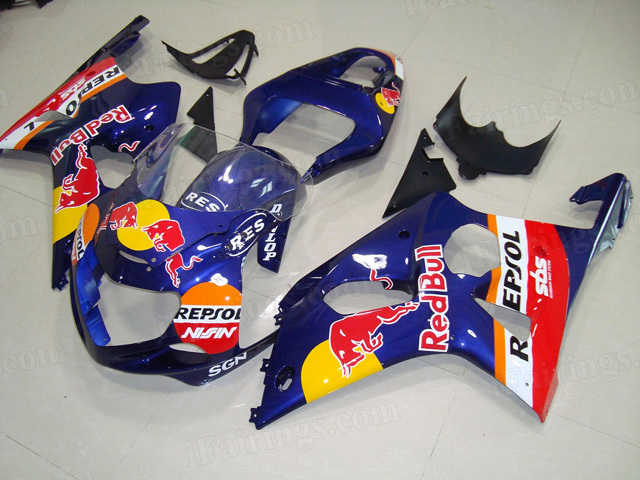 2000 2001 2002 Suzuki GSXR1000 blue RedBull graphic fairing kits.