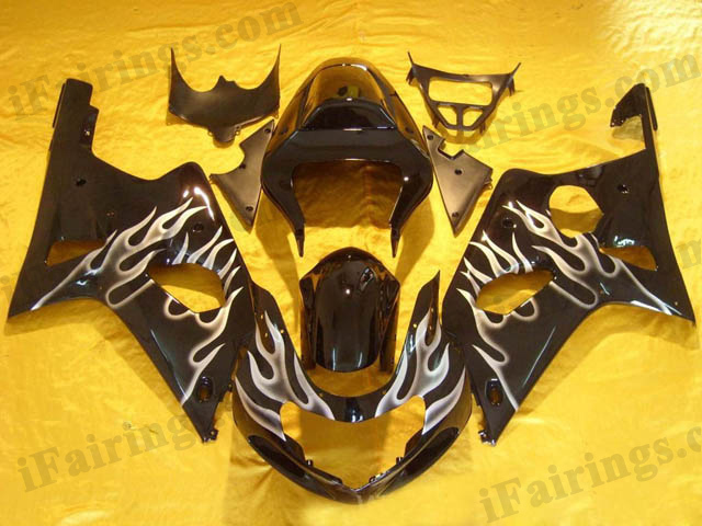 gixxer 2000 2001 2002 GSXR1000 black and white flame fairings