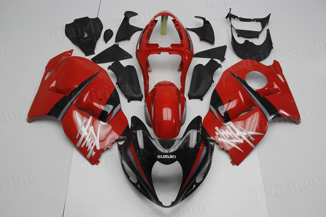 1999 to 2007 Suzuki GSXR 1300 Hayabusa red and black fairing kits.