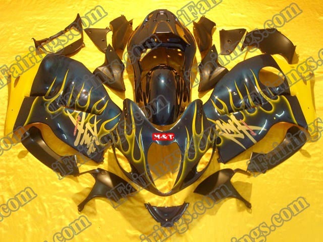 hayabusa 1999 to 2007 GSXR1300 black and yellow flame fairings