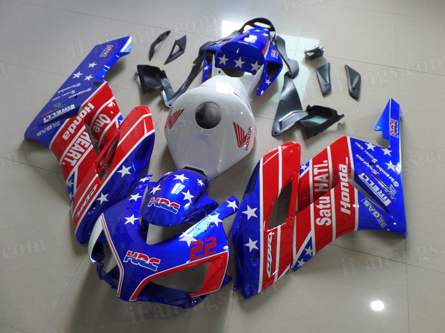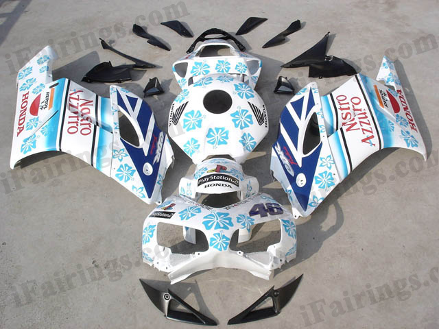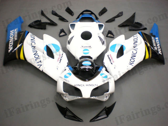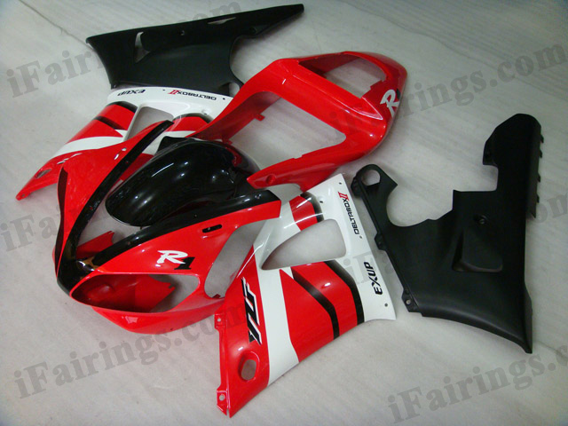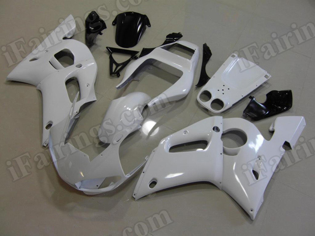 Aftermarket fairings for 1999 to 2002 YZF R6 white/blue/black scheme.