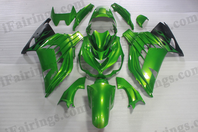 Motorcycle fairings/bodywork for Kawasaki Ninja ZX14R 2012 to 2015 green and black paint.