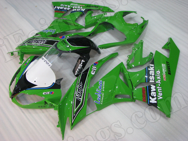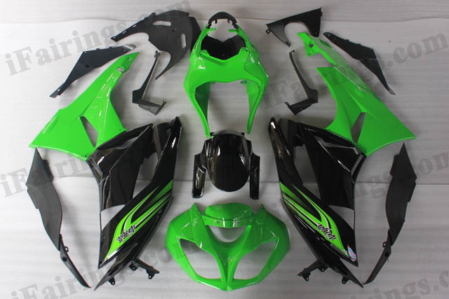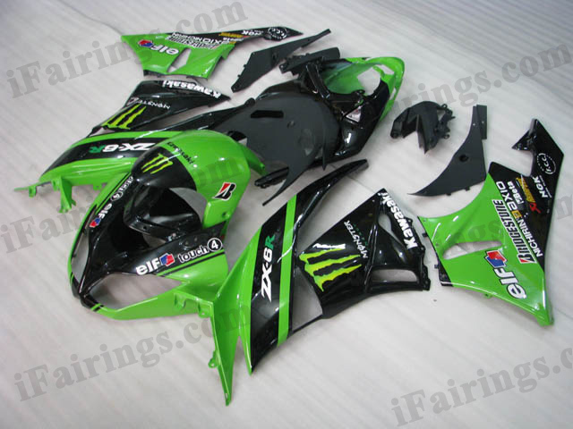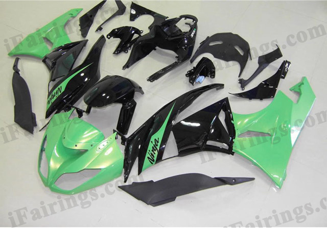2009 2010 2011 2012 Kawasaki ZX6R ZX636 Ninja green and black fairing kits.