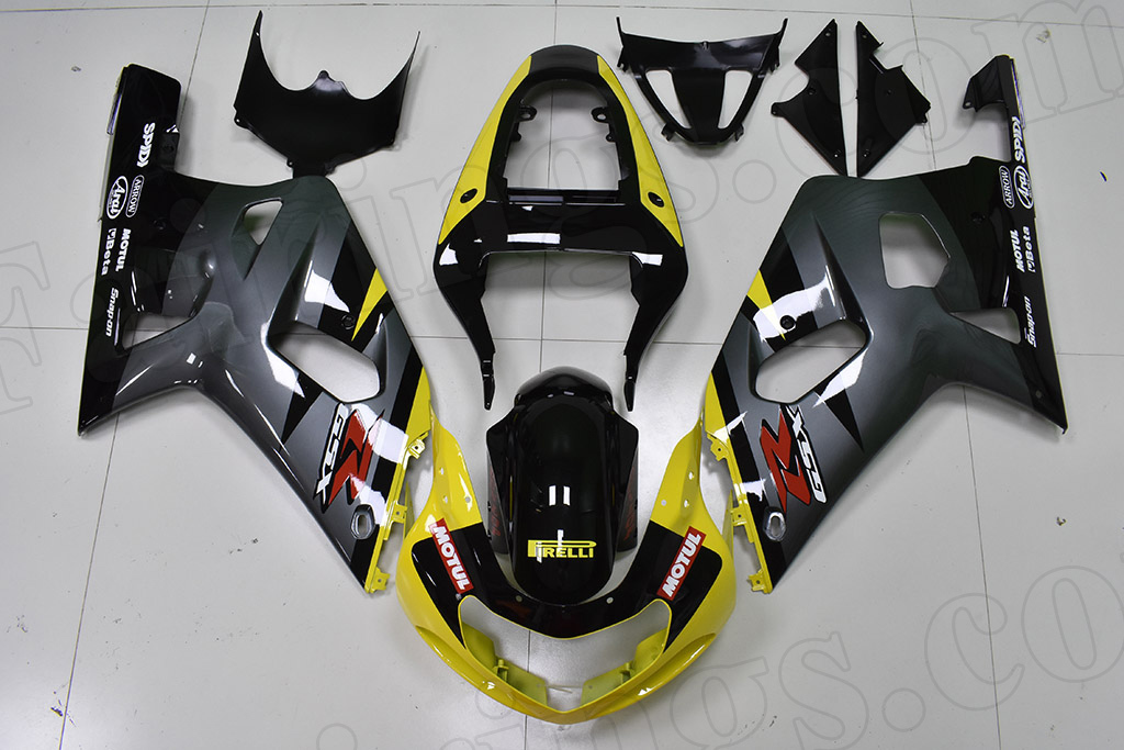 GSXR600/750 2004 2005 yellow and grey fairings, 2004 2005 GSXR 600/750 replacement bodywork.