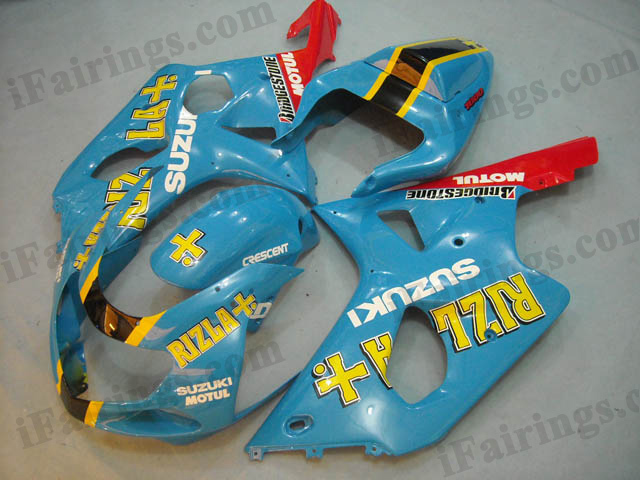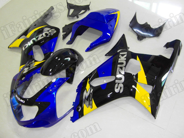 Motorcycle fairings/bodywork for 2001 2002 2003 Suzuki GSX R 600/750 blue, black and yellow.