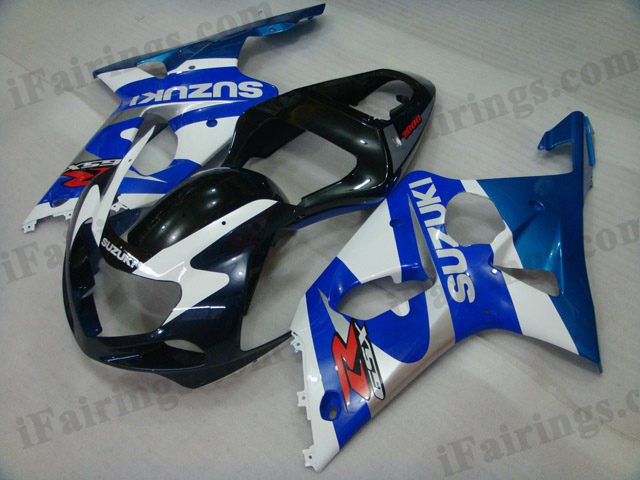 Motorcycle fairings/bodywork for 2001 2002 2003 Suzuki GSX R 600/750 white and blue.