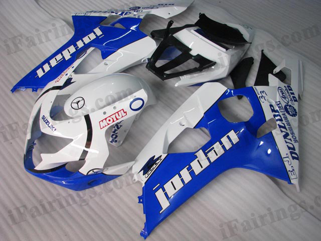 GSXR600/750 2004 2005 blue and white fairings, 2004 2005 GSXR 600/750 replacement body kits.