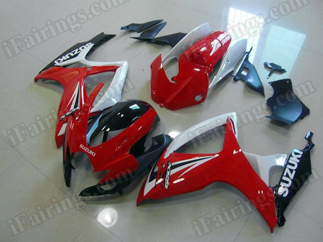 Motorcycle fairings/body kits for 2006 2007 Suzuki GSX R 600/750 red, white and black.