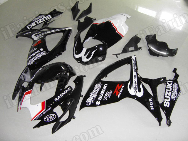 Motorcycle fairings/body kits for 2006 2007 Suzuki GSX R 600/750 black, red and white.