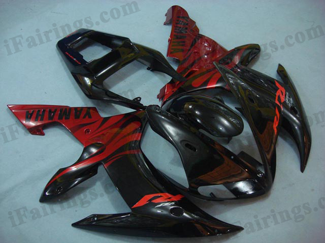 Product Description YZF-R1 2002 2003 black and red fairing kit. Parts: All painted cowls shown as the photo and all any small ABS trim...