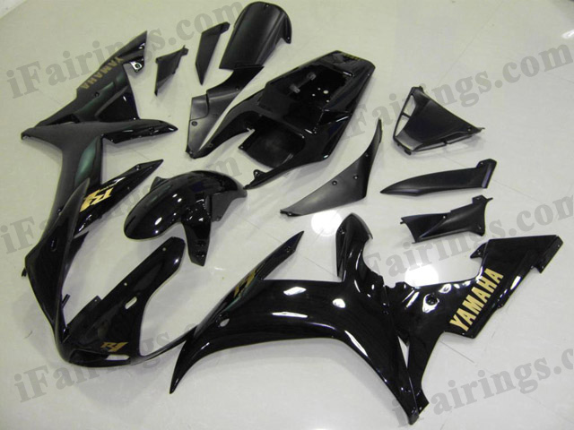 Product Description YZF-R1 2002 2003 glossy black fairing kit. Parts: All painted cowls shown as the photo and all any small ABS trim plastic...