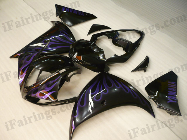 2009 2010 2011 Yamaha YZF-R1 black and blue flame fairing kits.