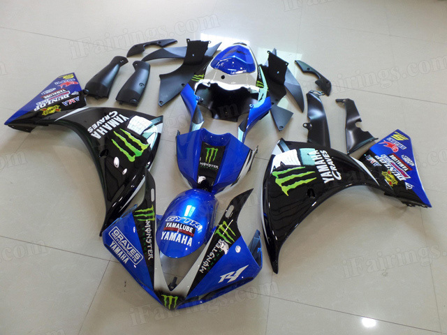 2009 2010 2011 Yamaha YZF R1 blue and black monster graphic fairing kits.